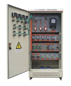 該裝置按標準電氣控制柜設計制造規(guī)格,充分利用雙面位置,柜內裝有完成各種照明電路所需的單相電度表、日光燈、單聯開關、插座、感應開關、漏電開關等,以及電氣控制所需要的多種低壓電器,如漏電斷路器、熔斷器、電流互感器、交流接觸器、時間繼電器、熱繼電器、中間繼電器、行程開關、按鈕、信號燈、轉換開關、電壓表、電流表、功率表及電度表等,為了延長電器使用壽命,各電器的接點都與接線端子相連,再由接線端子與被控制電氣連接。
