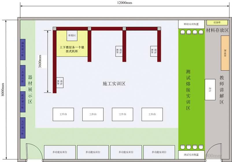 該區(qū)域?qū)嵱?xùn)的內(nèi)容是綜合布線系統(tǒng)工程中施工部分,主要實(shí)訓(xùn)綜合布線工程中動(dòng)手部分追多的各種施工操作,從而使學(xué)生掌握追基礎(chǔ)的施工技能。