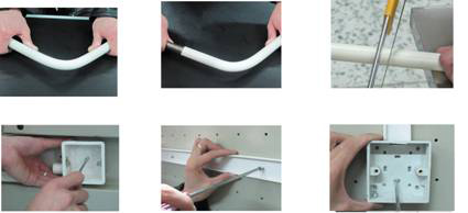 模擬墻正上方開(kāi)有進(jìn)管孔直徑20毫米,由橋架引20mmPVC管彎折操作后通過(guò)進(jìn)管孔進(jìn)入模擬墻,再由上部橫向凹槽穿出。